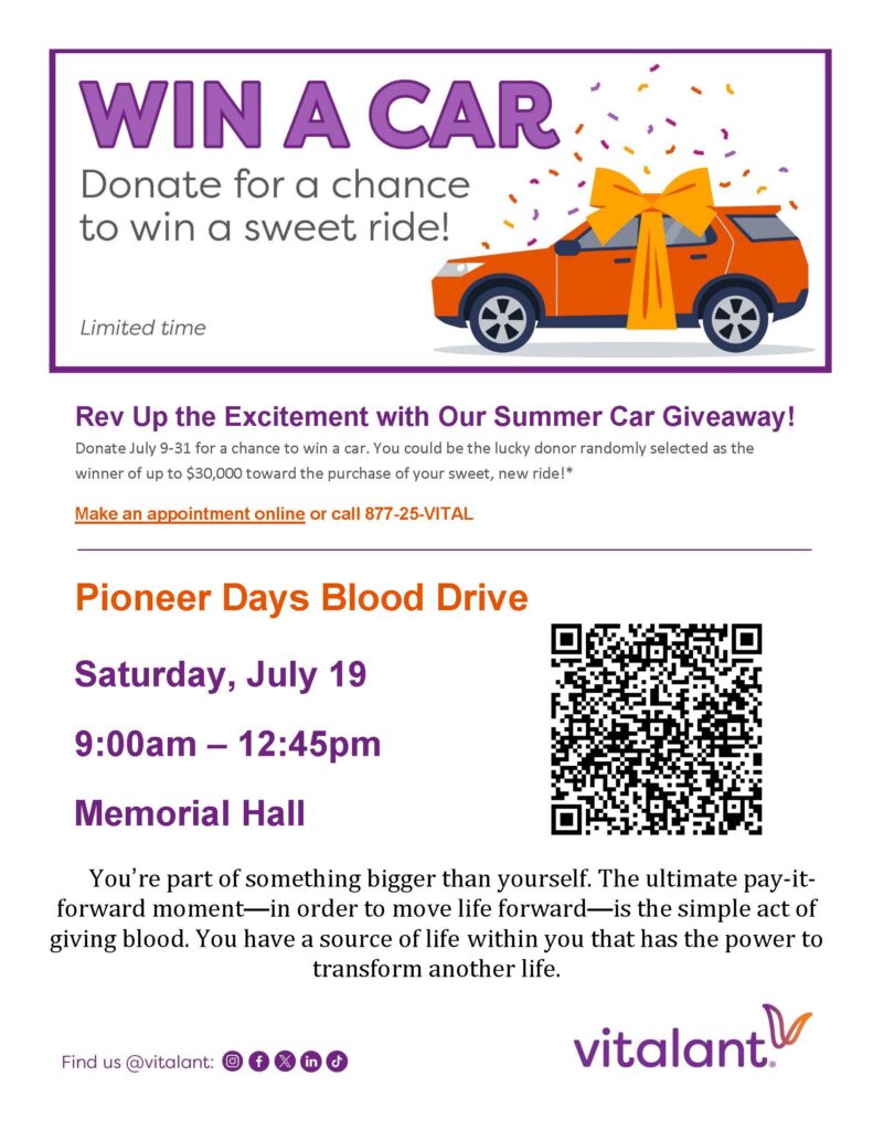 Sign up today to reserve a time slot to donate blood with Vitalant or scan the QR code below.